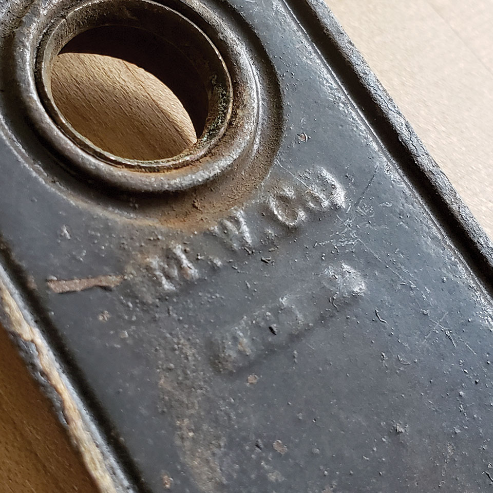 Antique architectural salvage ornate cast iron Mallory Wheeler Co. Fleur-de-lis pattern doorknob backplate hardware approx. (1 5/8" wide x 5 1/4" tall x 1/2" thick). Color and condition vary, see photos to evaluate. Priced at $28/each.