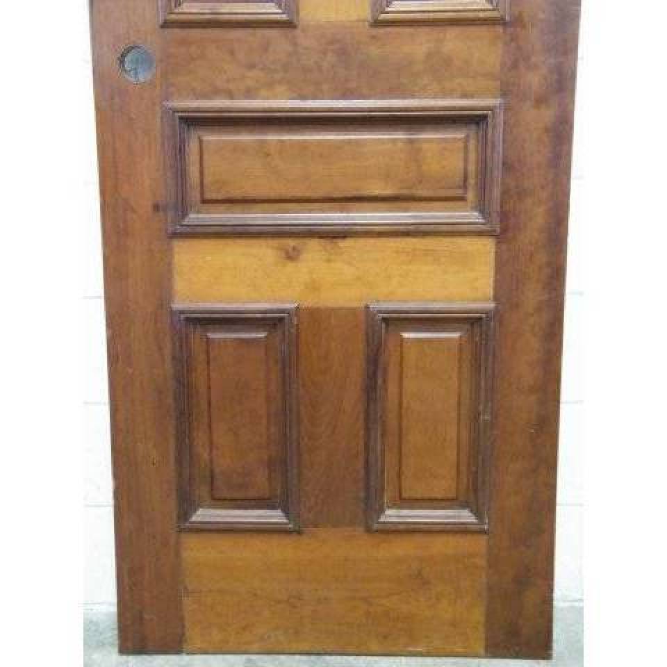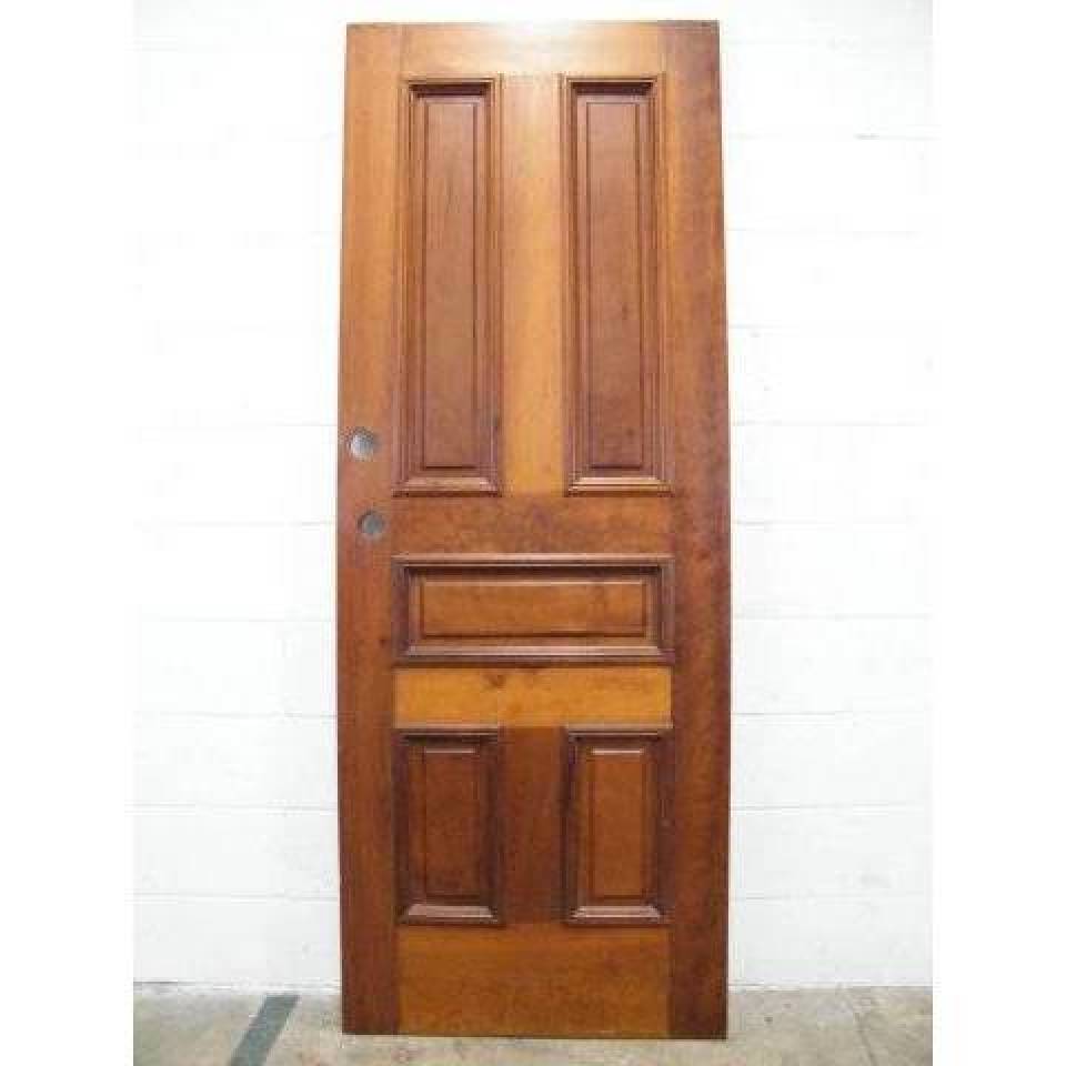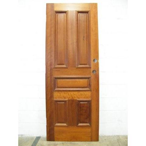 Architectural salvage interior five panel cherry wood door measuring approximately 30 3/8" wide x 81 3/8" tall x 1 3/4" thick.