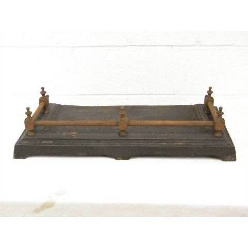 Vintage/antique architectural salvage cast iron fireplace fender with gallery rail measuring approximately 27 15/16" wide x 6 1/4" tall x 13 3/4" front to back.