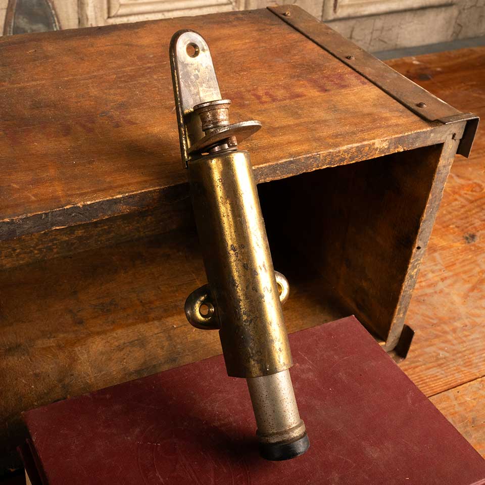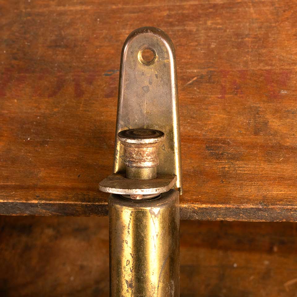 Architectural salvage antique brass foot activated doorstop door hardware measuring approx. 2 3/8" wide x 7 9/16" tall x 1 13/16" thick. Color and condition may vary, see photos to evaluate. Priced at $20/each.