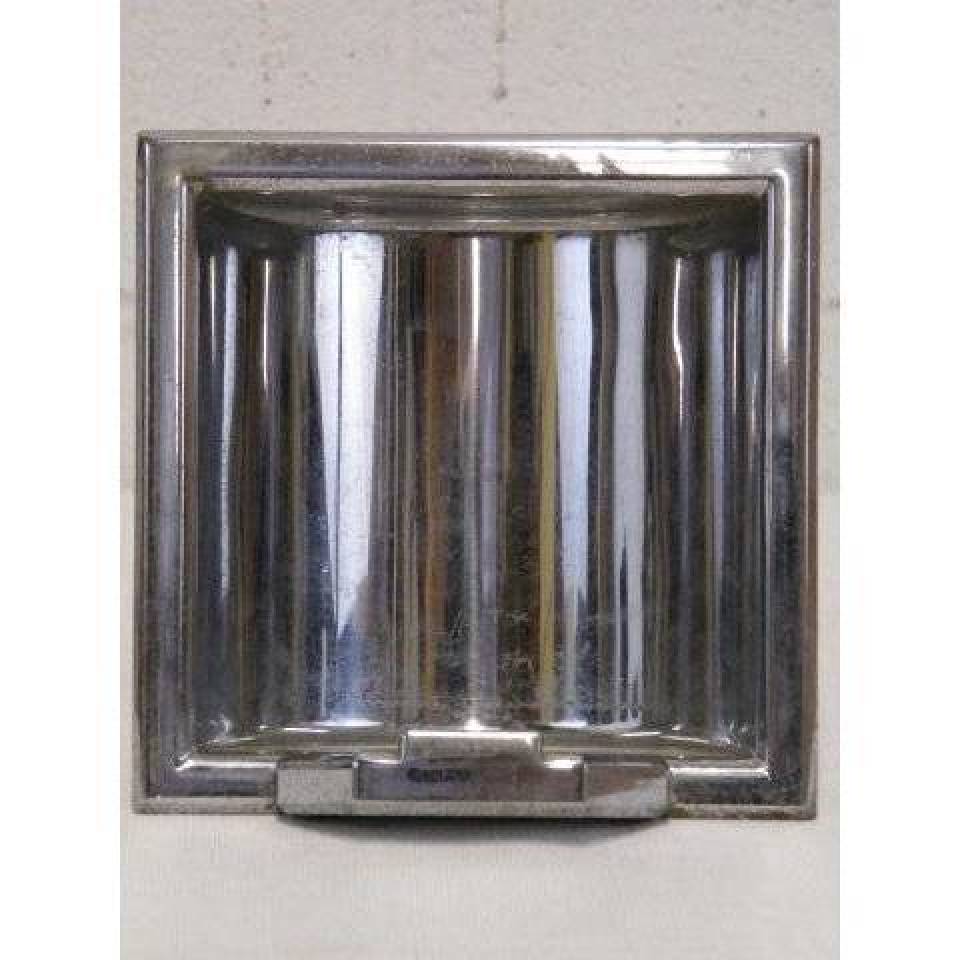 Vintage/antique architectural salvage metal bathroom soap holder wall insert measuring approximately 6 1/16" wide x 6 1/16" tall x 3 1/16" front to back.