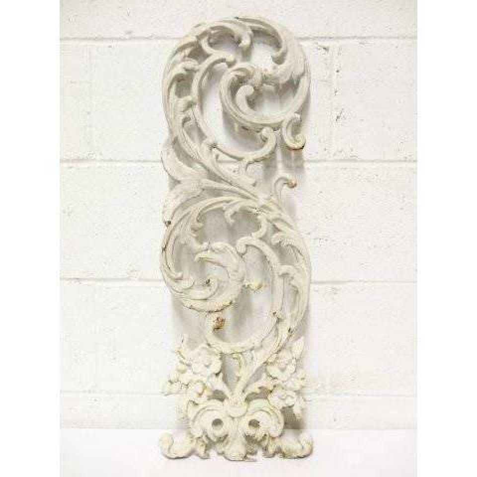 Vintage antique architectural salvage ornate cast iron ornament with bird and flower motif measuring approx. 9 3/8" wide x 27 3/8" tall x 7/8" thick. See photos to evaluate condition.