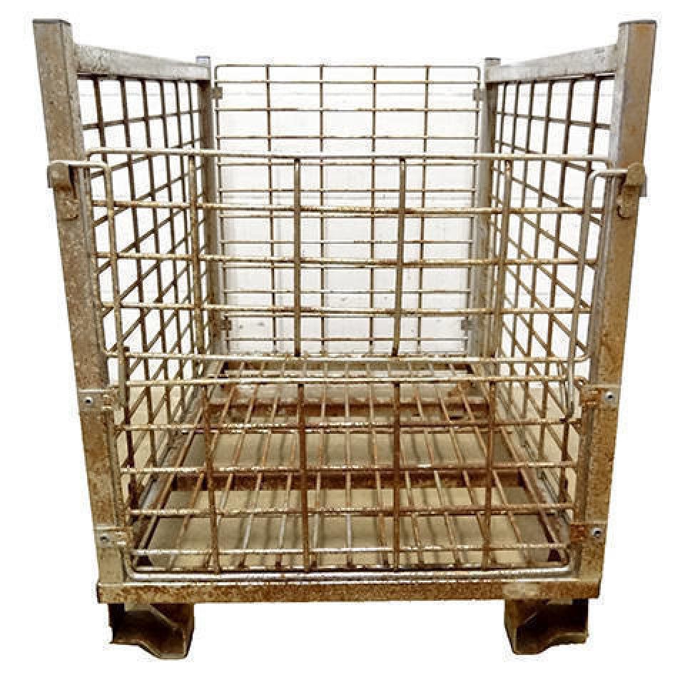 Vintage/antique industrial metal parts bin measuring approximately 21" wide x 27" tall x 27" front to back.