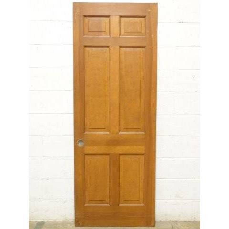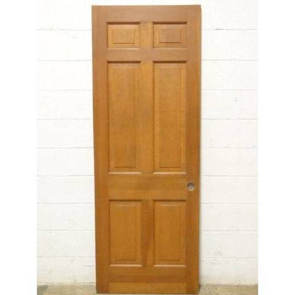 Architectural salvage six panel interior wood door measuring approximately 29" wide x 78 3/4" tall x 1 3/8" thick.