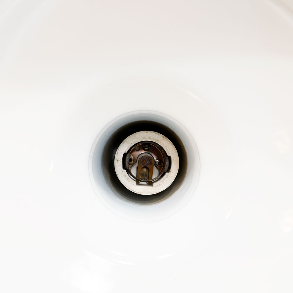 Large vintage antique architectural salvage green porcelain enameled flush mount industrial farmhouse light fixture measuring approximately 18" diameter x 13 1/2" tall.