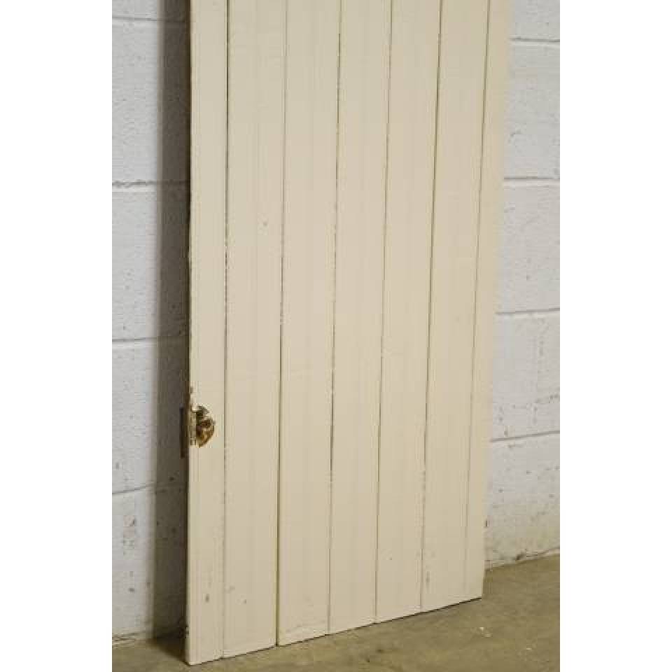 Vintage antique architectural salvage long and narrow beadboard door. Measuring approximately 20" wide x 90 1/2" tall x 1 1/2" thick.