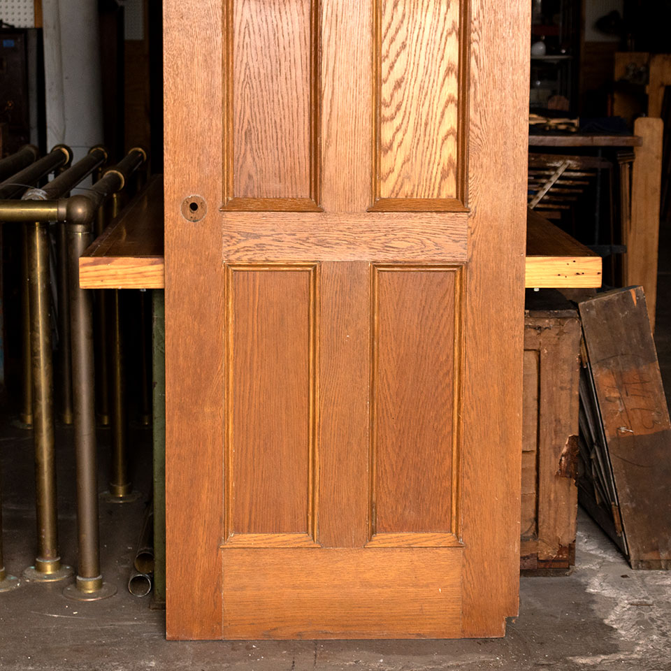 Vintage antique architectural salvage six panel oak interior door measuring approximately 29 3/4" wide x 82 1/4" tall x 1 3/4" thick. Please see pictures for condition.