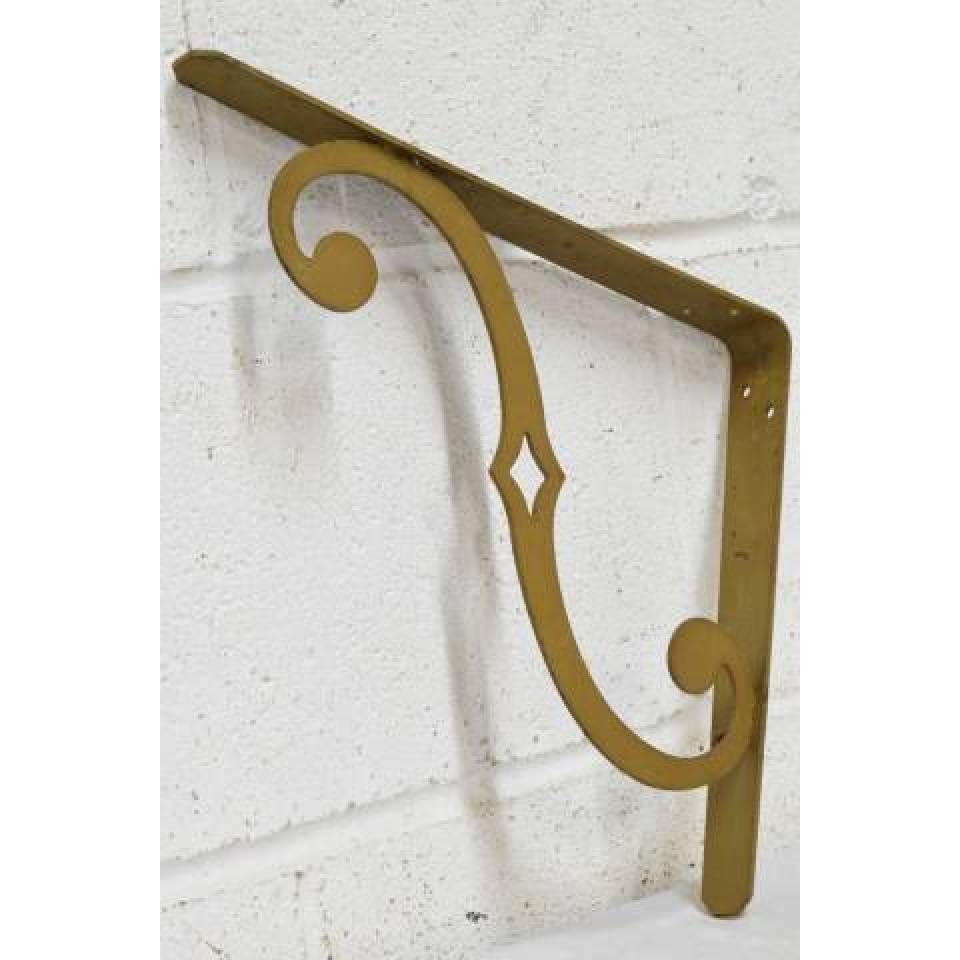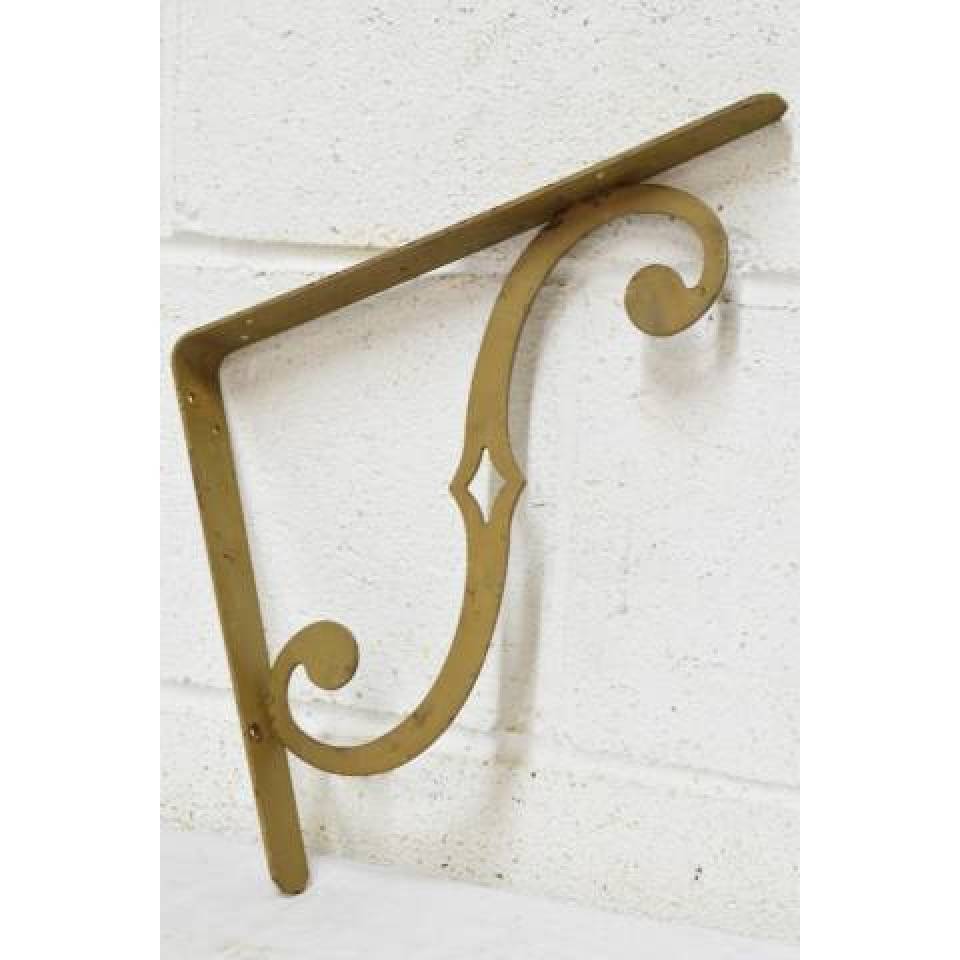 Pair of vintage/antique architectural salvage metal shelf brackets each measuring approximately 1 1/4" wide x 9 1/2" tall x 11 1/4" front to back. Priced at $65 for the pair.