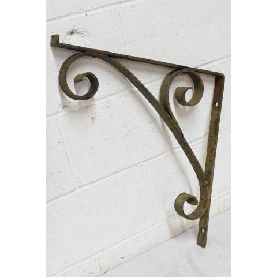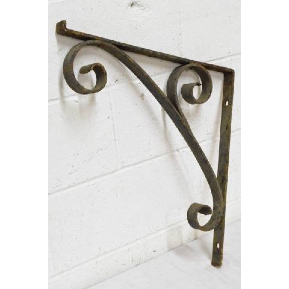 Pair of vintage/antique architectural salvage wrought iron brackets each measuring approximately 1 1/4" wide x 18 3/4" tall with a 19" projection. Priced at $295 for the pair.