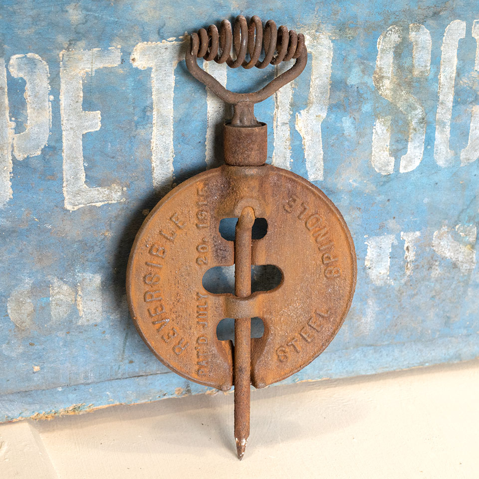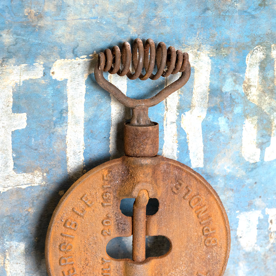 Vintage antique architectural salvage Griswold American 4" inch reversible steel spindle stove pipe flue damper measuring approximately 4" x 7 1/4" overall.