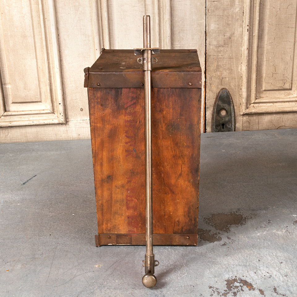Antique architectural salvage 18 1/2" long brass French door or casement window surface mount slide bolt hardware with round knob, two mounting brackets, and strike plate. One mounting bracket has a broken screw hole - See photos.