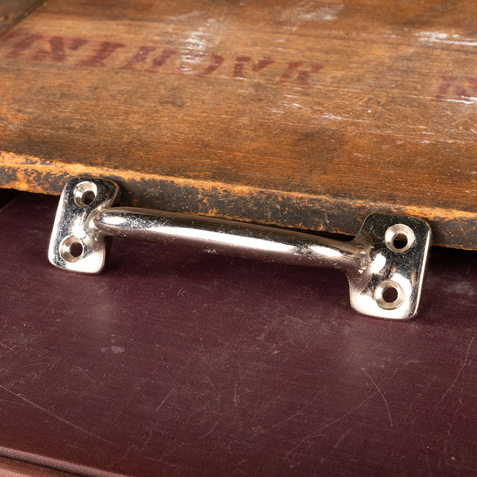 Vintage architectural salvage cast chrome window sash lift / furniture drawer pull handle each measuring approx. 4 3/4" wide x 1 1/4" tall x 1 1/4" front to back. Color and condition vary, see photos to evaluate. Priced at $5/each.