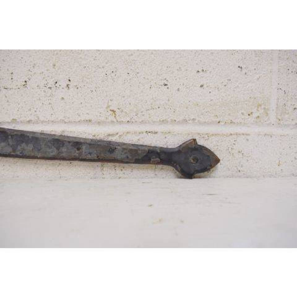 Vintage/antique architectural salvage decorative wrought iron spear point dummy door strap hinge hardware measuring approximately 24" wide x 5 1/8" tall x 1/8" thick.