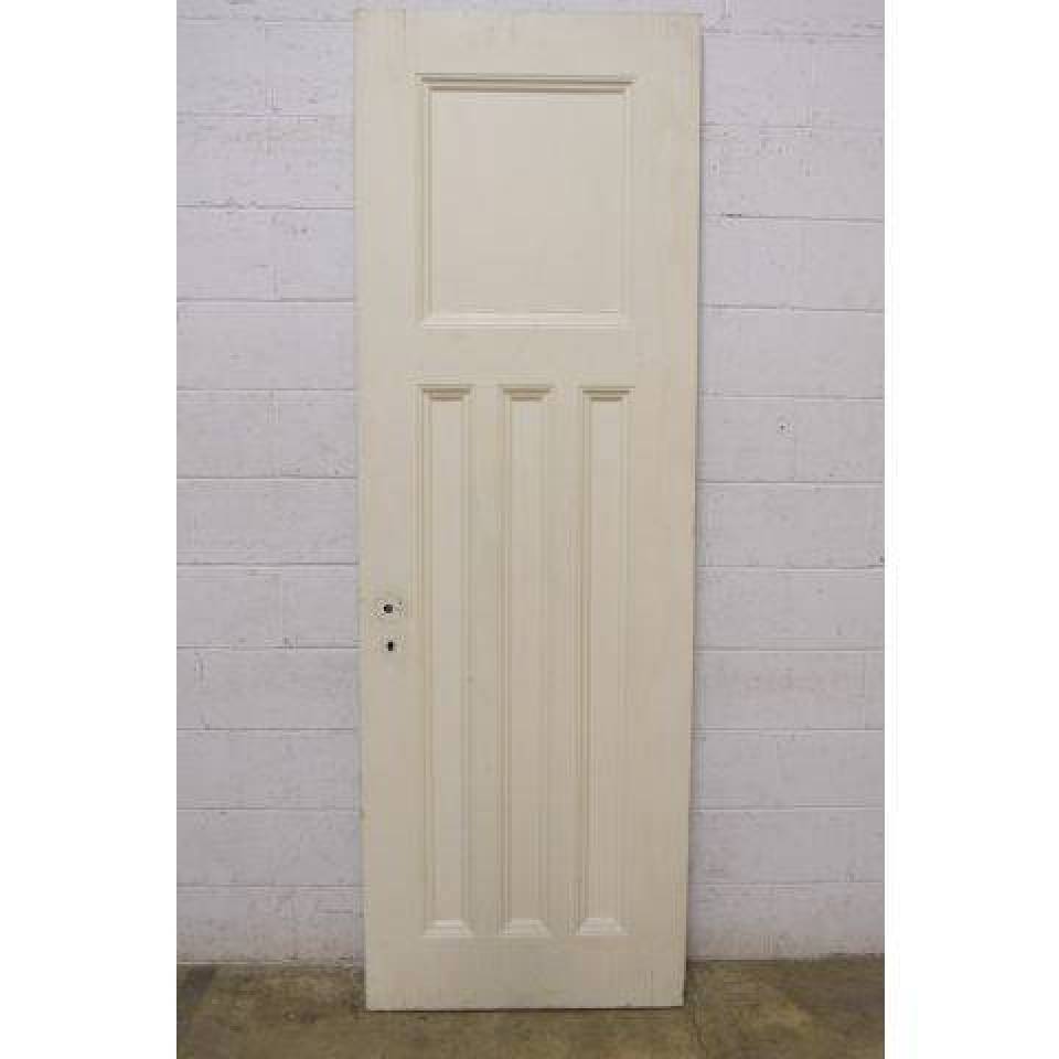 Unique vintage antique 4 panel painted wood interior door measuring approximately 29 3/4" wide x 89" tall x 1 3/4" thick.
