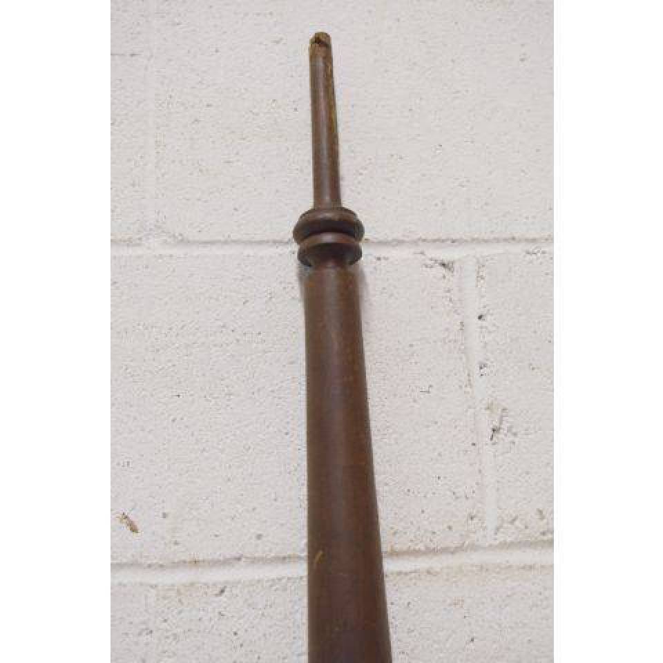 Vintage/antique architectural salvage turned wood staircase baluster measuring approximately 32" long with a 2" square base. Priced at $10/each.