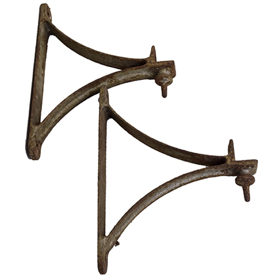 Nice pair of vintage/antique architectural salvage heavy cast iron brackets each measuring approximately 2" wide x 15 3/8" tall x 11 5/8" front to back. Priced at $250 for the pair.