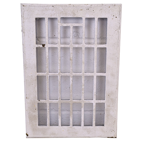 Vintage/antique architectural salvage cast iron heat grate measuring approximately 8" x 12" (insert dimensions) and 13 3/4" x 9 1/2" (overall dimensions). This grate does not have louvers.