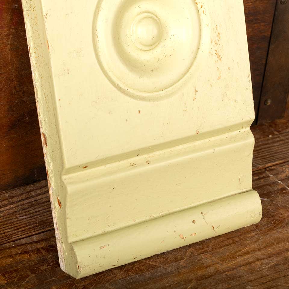 Architectural salvage antique interior window or door painted wood rosette trim block measuring approx. 5 1/2" wide x 11" tall x 1 1/8" front to back. Color and condition may vary, see photos to evaluate. Priced at $25/each.