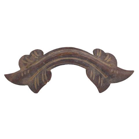 Vintage antique architectural salvage Victorian Eastlake carved wood furniture handle drawer pull measuring approximately 7" wide x 2 1/4" tall with a 1 5/8" projection.
