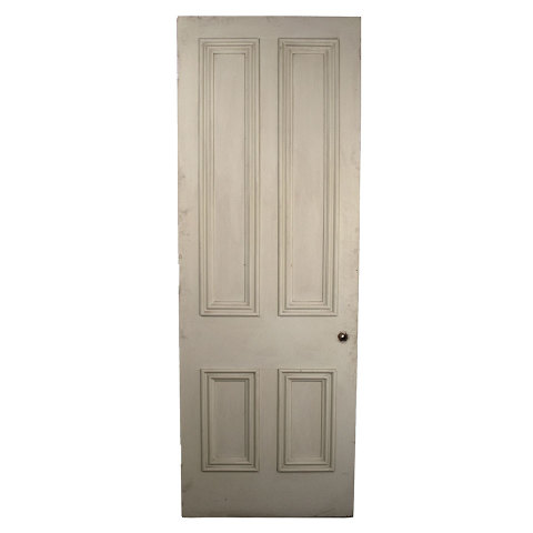 Vintage antique architectural salvage four panel interior wood door measuring approximately 31 3/4" wide x 90" tall x 1 3/8" thick.