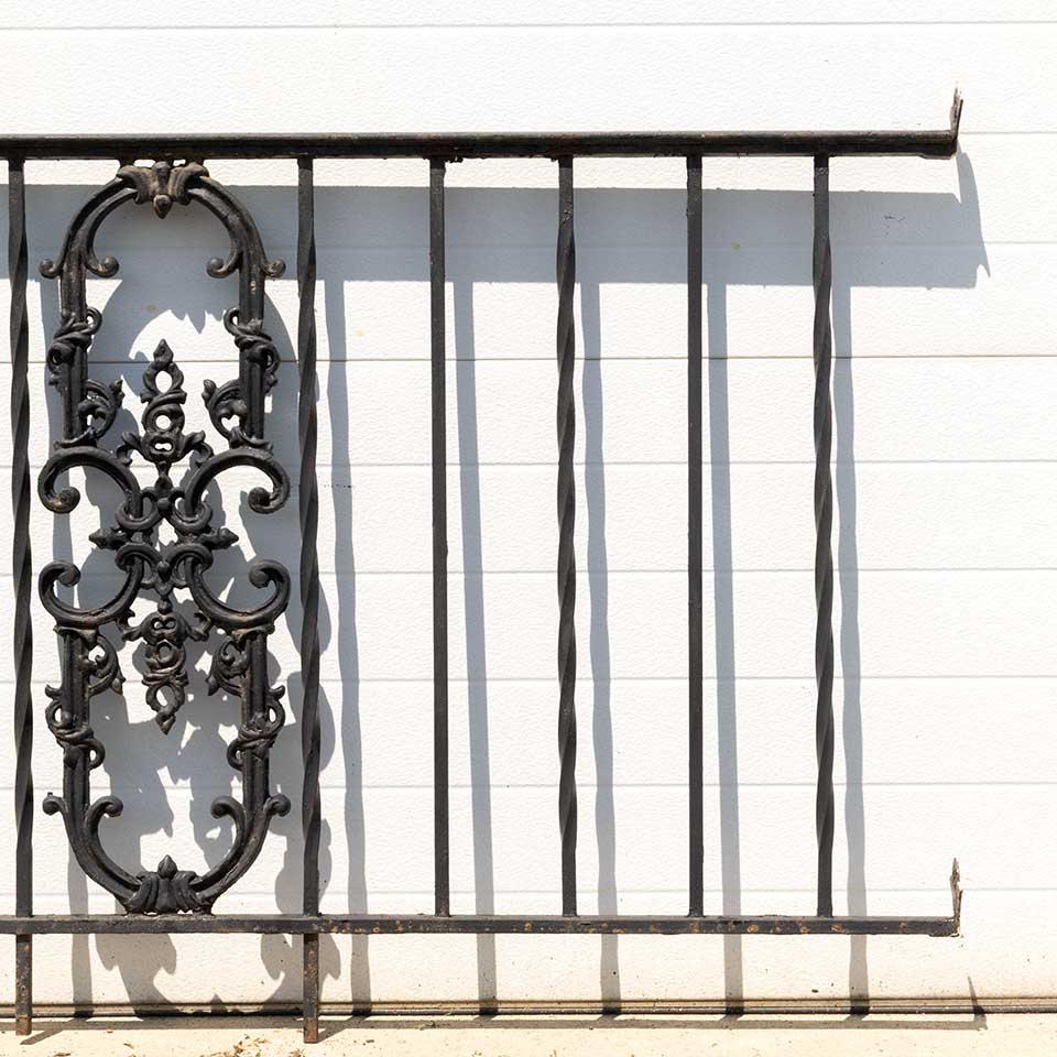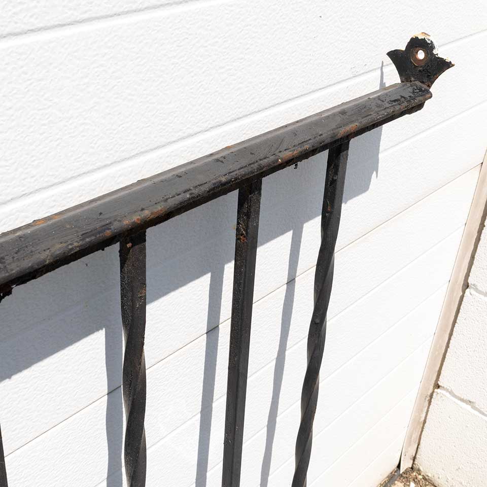 Architectural salvage vintage cast iron railing section measuring approx. 90 3/4" wide x 28 7/8" tall x 1 3/4" front to back. See photos to evaluate condition.