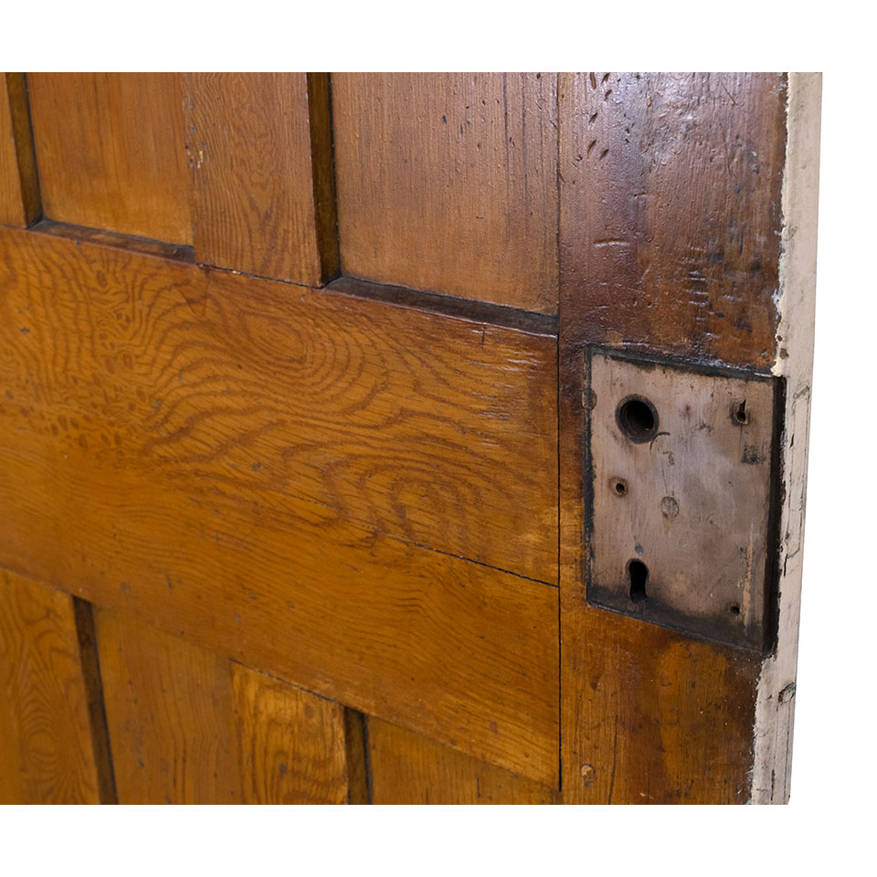 Vintage antique architectural salvage vertical six panel grain painted interior wood door measuring approximately 33 5/8" wide x 86 3/4" tall x 1 3/8" thick.