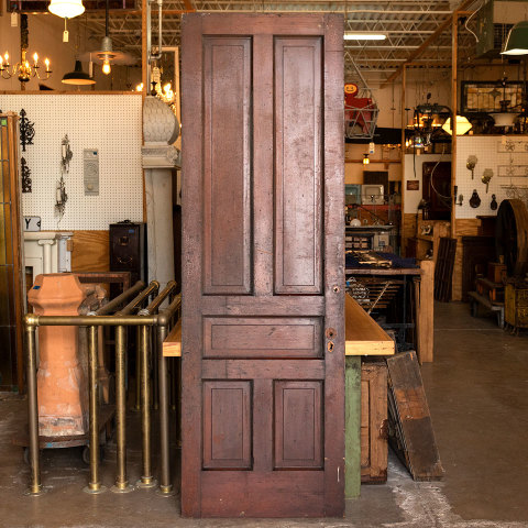 Vintage antique architectural salvage large solid wood five panel interior door measuring approximately 30 1/4" wide x 93 1/2" tall x 2 1/4" thick.