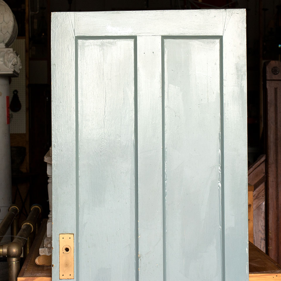 Vintage antique architectural salvage painted wood 2 panel interior door measuring approximately 31" wide x 74 1/8" tall x 1 3/8" thick.