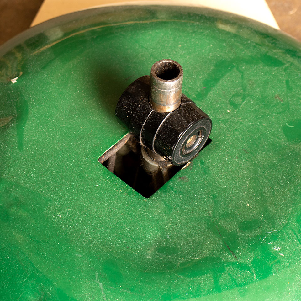 Vintage antique rotating Christmas tree stand with star base measuring approximately 32" x 32" x 6 1/2" front to back.