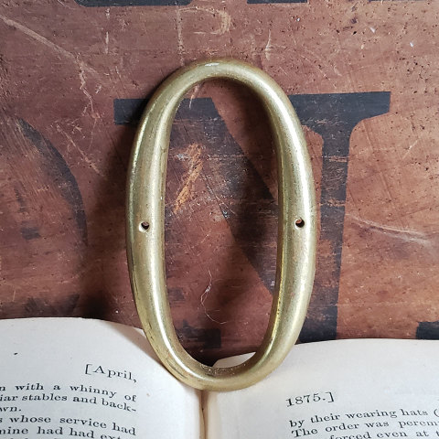 Vintage antique architectural salvage solid brass house number zero measuring approximately 1 9/16" x 2 3/4". Sold individually. Priced at $10/each.