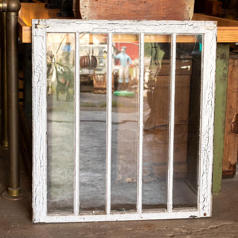 Vintage antique architectural salvage divided lite wood window sash measuring approximately 30 1/2" wide x 33 1/2" tall x 1 1/2" thick. Priced at $80/each. Due to the nature of architectural salvage - condition and color may vary.