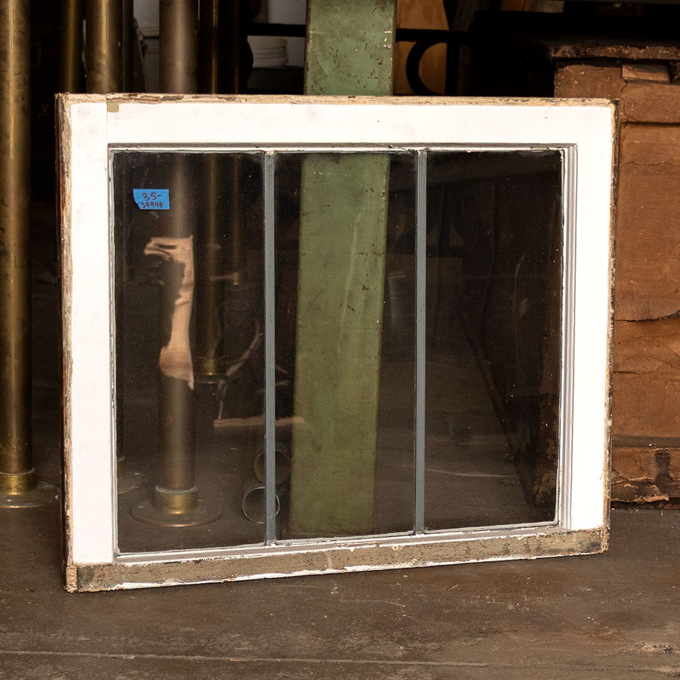 Architectural salvage leaded glass window sash measuring approx. 28 1/2" wide x 23 1/2" tall x 1 3/4" thick. Color and condition may vary.