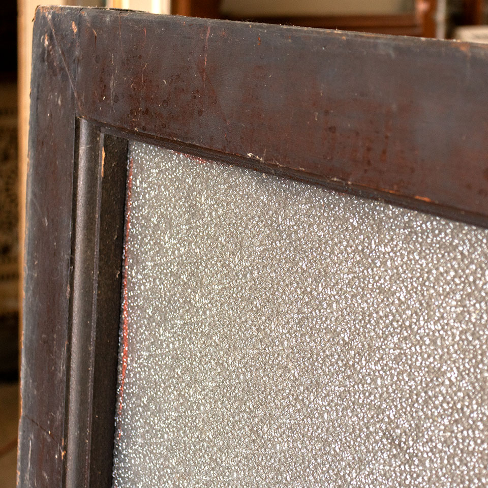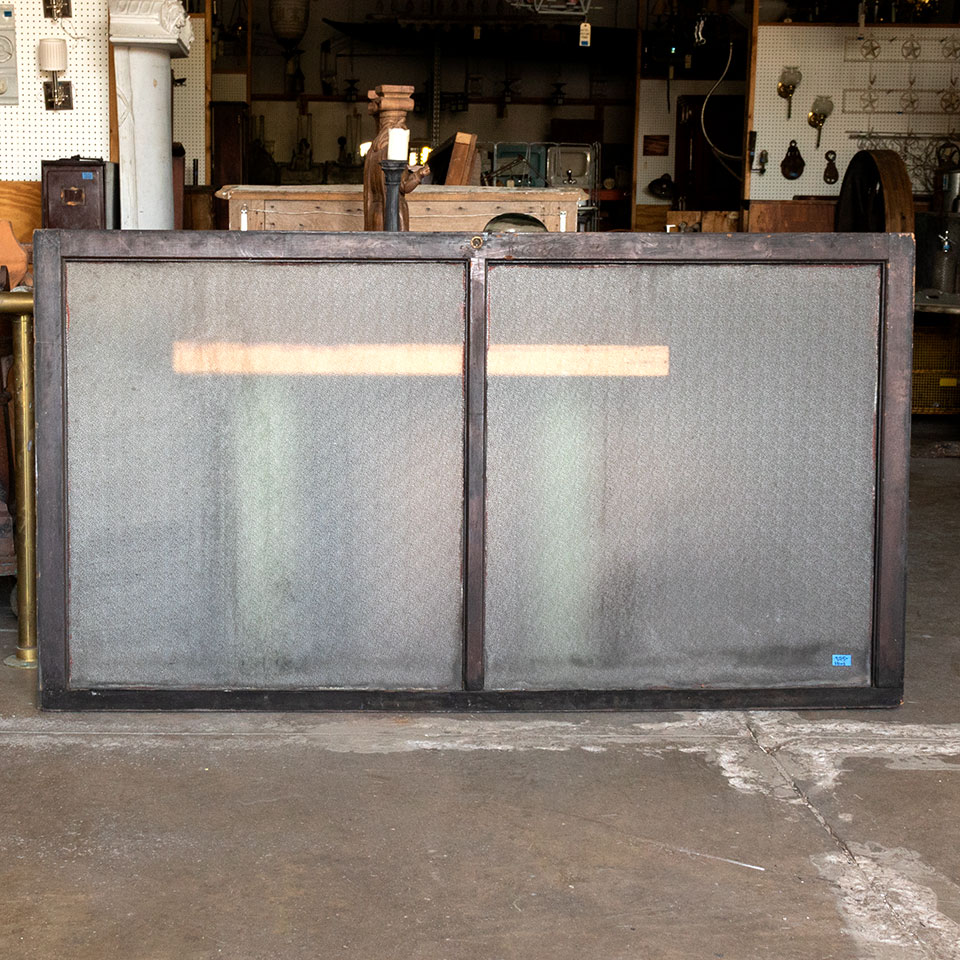 Large vintage antique architectural salvage divided lite wood window sash with pressed glass measuring approximately 76 1/4" wide x 42" tall x 2" thick.