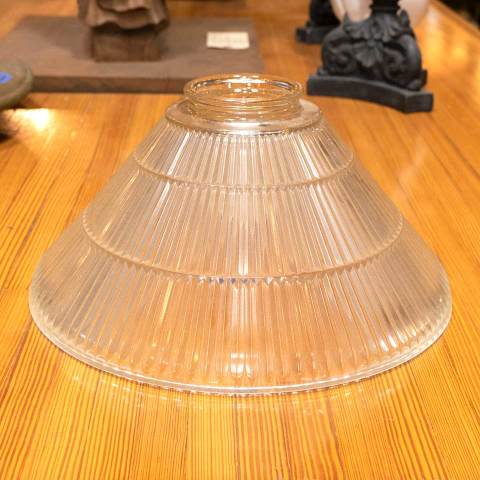 Architectural salvage ribbed glass light shade measuring approximately 12" in diameter x 6" tall with a 3 1/4" fitter.