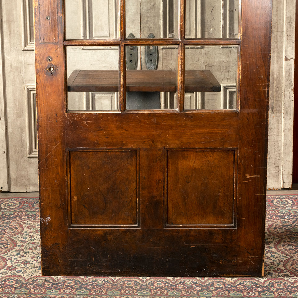 Antique architectural salvage paneled wood and glass classroom door with divided twelve lite window measuring approximately 39" wide x 80 1/2" tall x 1 3/4" thick. This door was reclaimed from Grandview Heights High School in Columbus, Ohio prior to interior renovations. Note a piece of muntin trim is missing. See photos to evaluate condition.