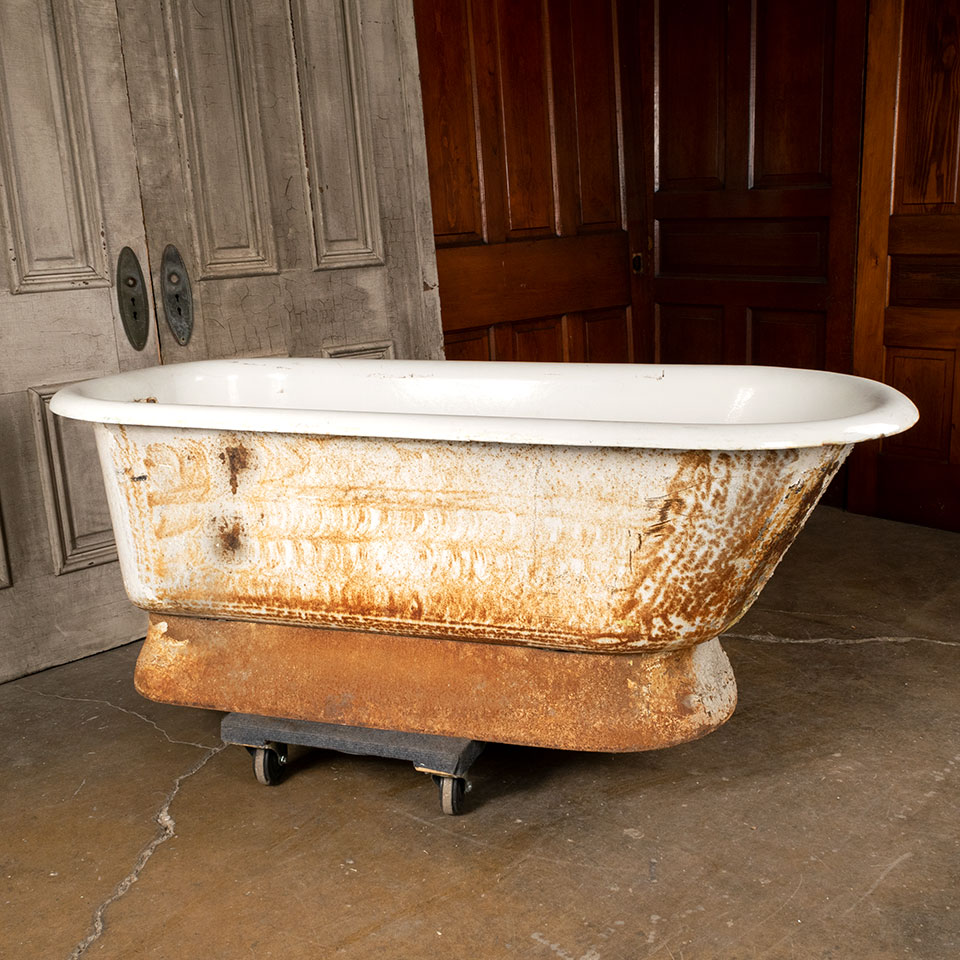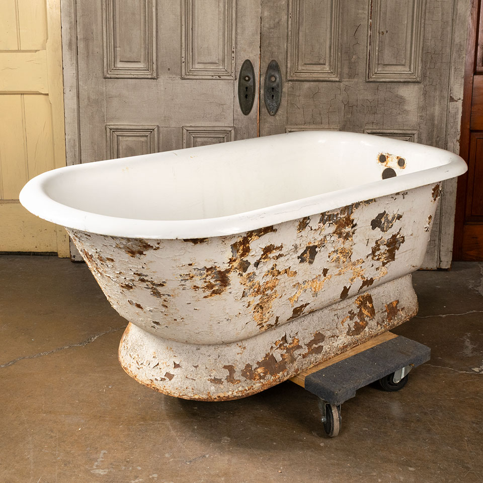 Antique architectural salvage porcelain enameled cast iron skirted apron bathtub measuring approx. 60" long x 30" wide x 22 1/2" tall. See photos to evaluate condition.