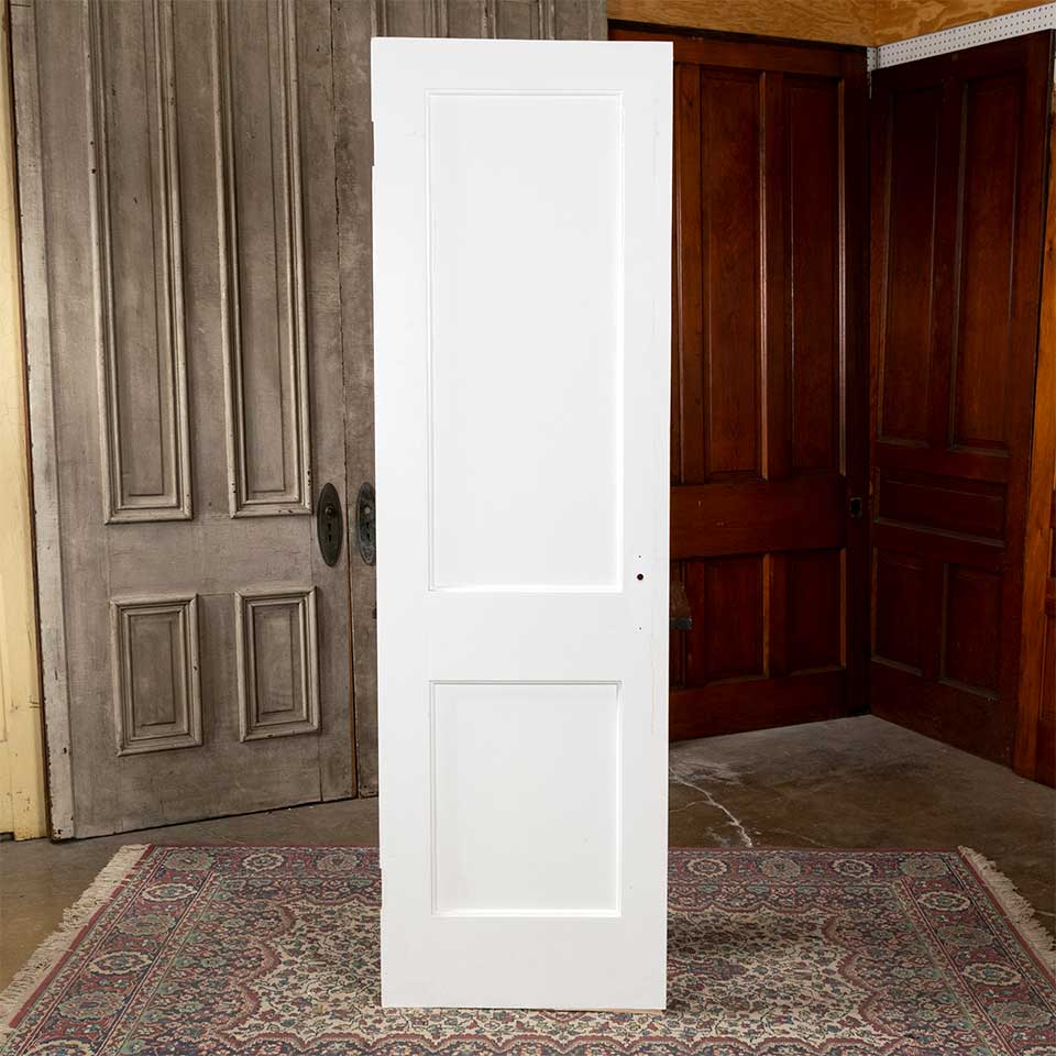 Antique architectural salvage two panel interior wood door measuring approximately 23 3/4" wide x 78 3/4" tall x 1 3/8" thick.