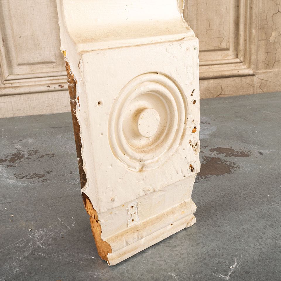 Antique architectural salvage interior painted wood door or window casing rosette trim block measuring approximately 5 1/2" wide x 12 5/8" tall x 1 7/16" thick. Sold individually. Priced at $15/each. Condition may vary.