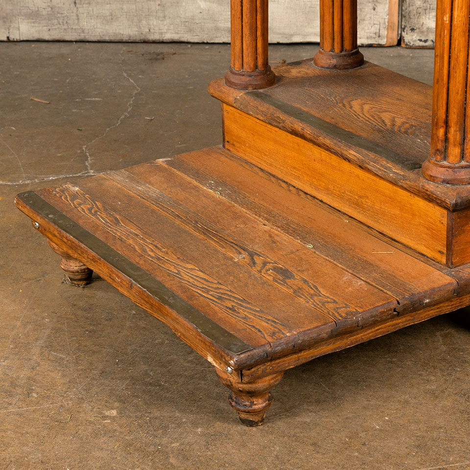 Unusual antique turned carved wood step chair measuring approximately 18 1/2" wide x 32" tall x 29 1/2" front to back.