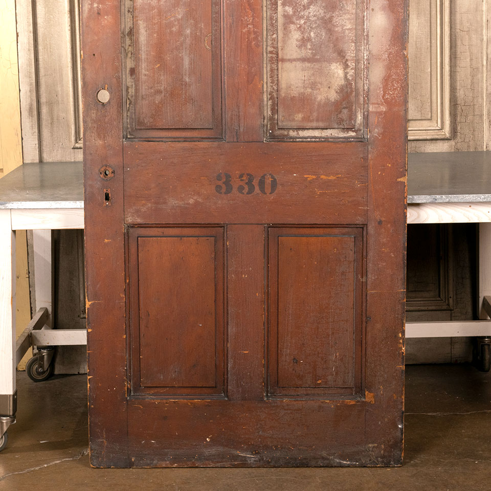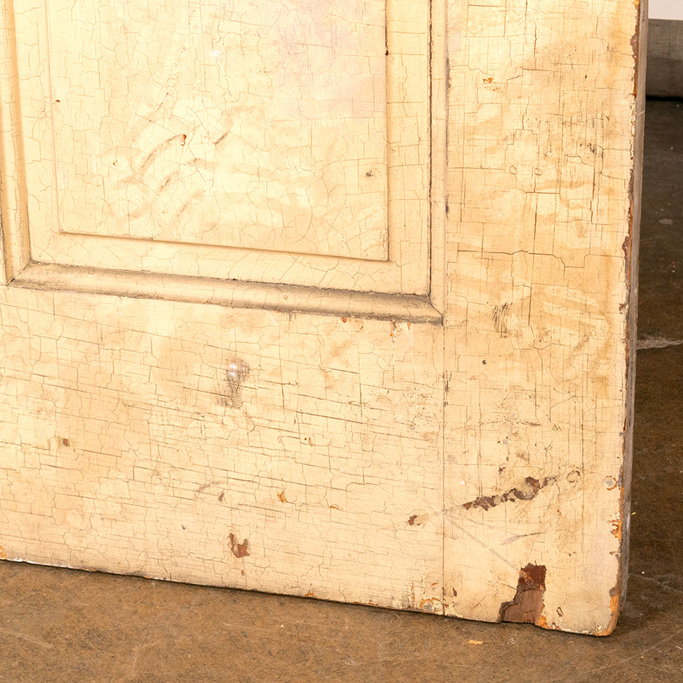 Antique architectural salvage four panel interior wood door measuring approximately 38 3/4" wide x 92 1/2" tall x 1 3/4" thick.