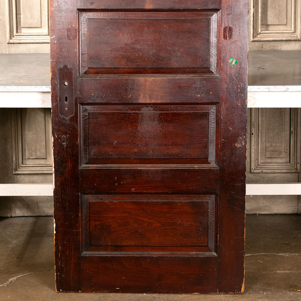 Antique architectural salvage horizontal 5 panel interior pine wood door measuring approximately 30 1/8" wide x 76 3/4" tall x 1 3/8" thick.