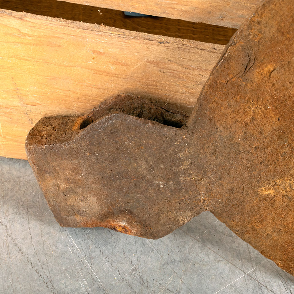 Antique broad head axe head measuring approx. 10 3/4" wide x 9 3/8" tall x 1 3/8". See photos to evaluate condition.