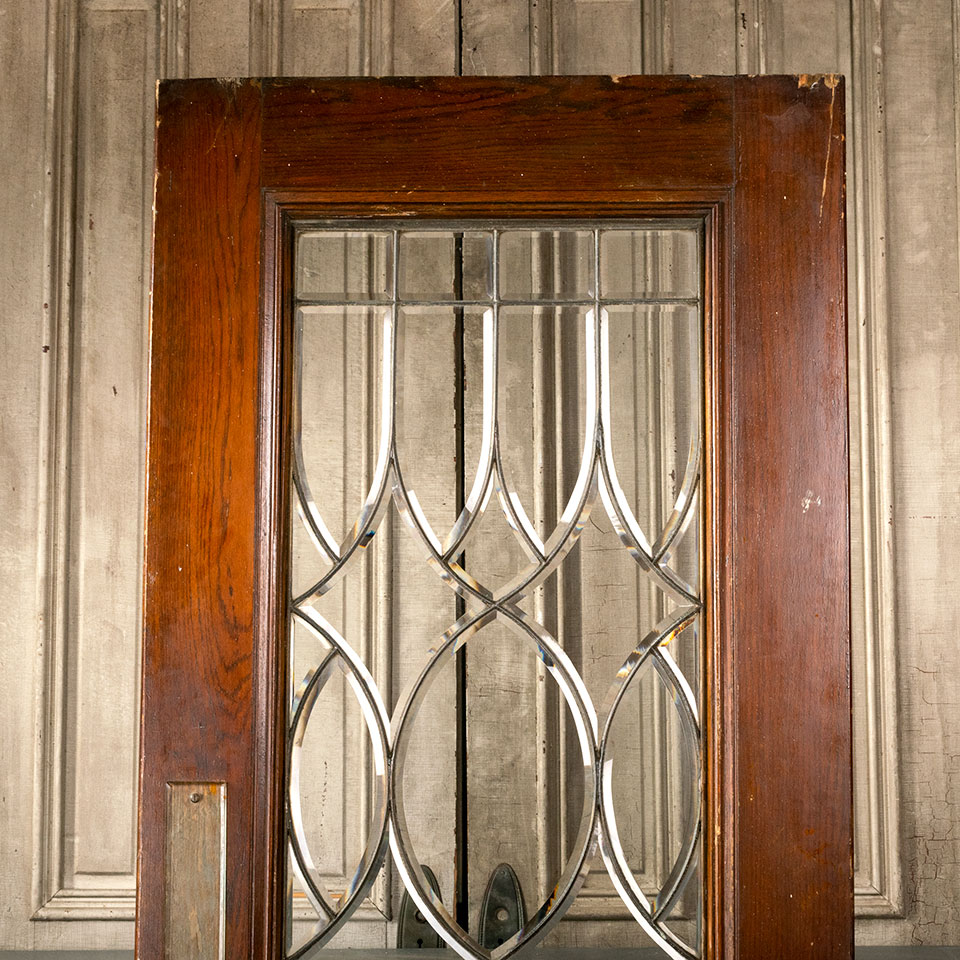 Antique architectural salvage leaded beveled glass swing door measuring approximately 36" wide x 83 7/8" tall x 1 3/4" thick. There is surface wear and some minor damage along the bottom and top. See photos to evaluate condition.