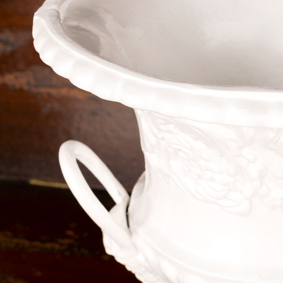 Architectural salvage small cast iron planter urn with handles measuring approx. 10" in diameter x 12" tall. See photos to evaluate condition.