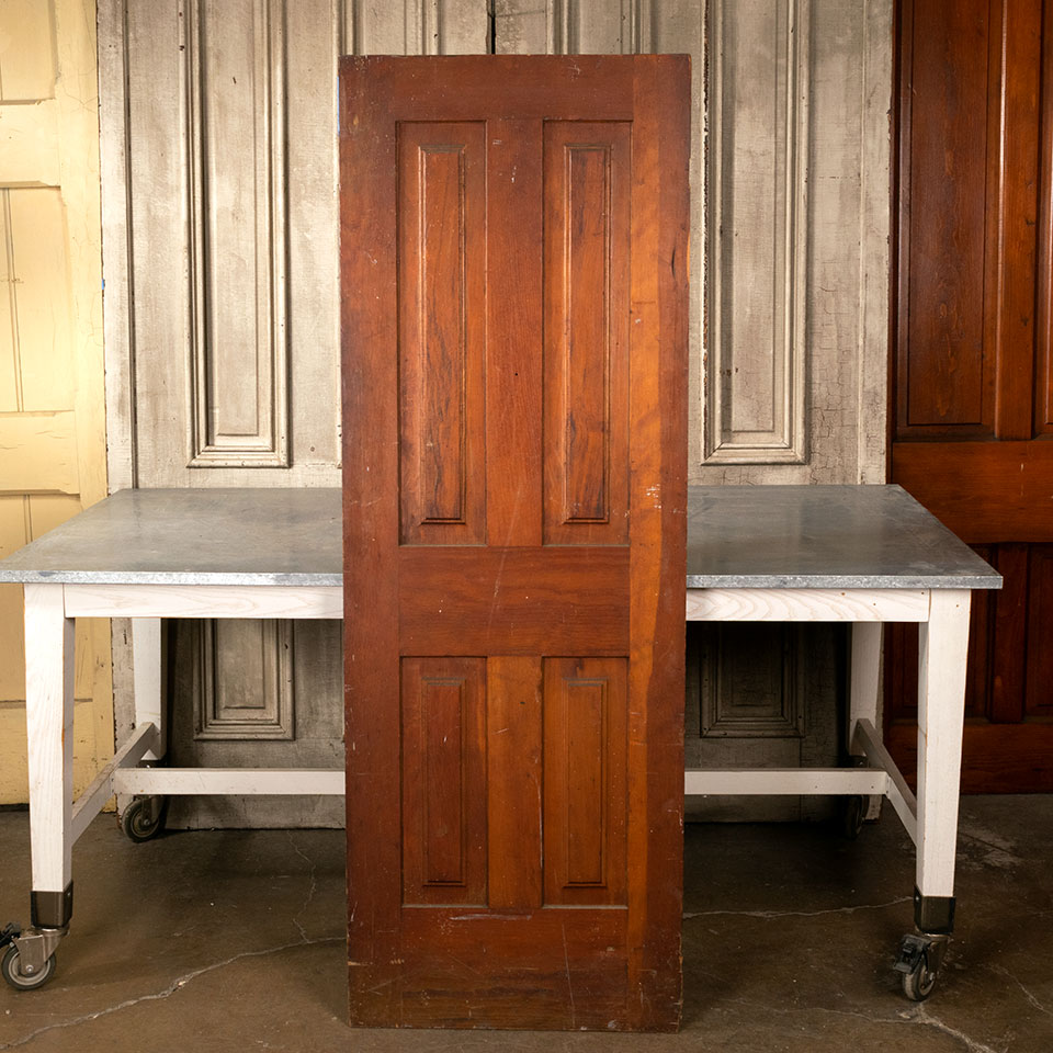 Antique architectural salvage raised 4 panel pine cabinet door measuring approx. 24 1/8" wide x 68 3/4" tall x 7/8" thick. This door is painted on one side and natural on the other. See photos to evaluate condition.