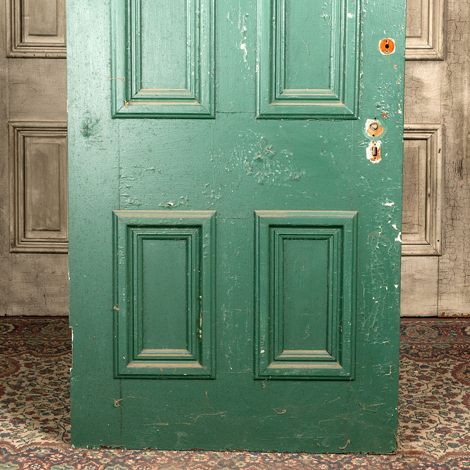 Antique architectural salvage 4 panel wood interior door measuring approx. 31 11/16" wide x 80" tall x 1 1/4" thick. One side of the door is natural and the other side has been painted. See photos to evaluate condition.