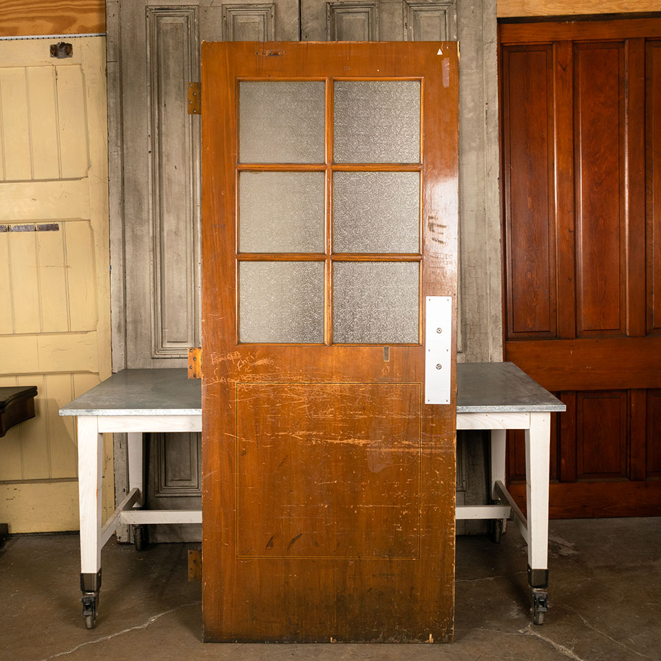 Vintage architectural salvage BOYS school restroom door with hardware measuring approx. 35 7/8" wide x 84" tall x 1 3/4" thick. Condition is consistent with age and use, see photos to evaluate.