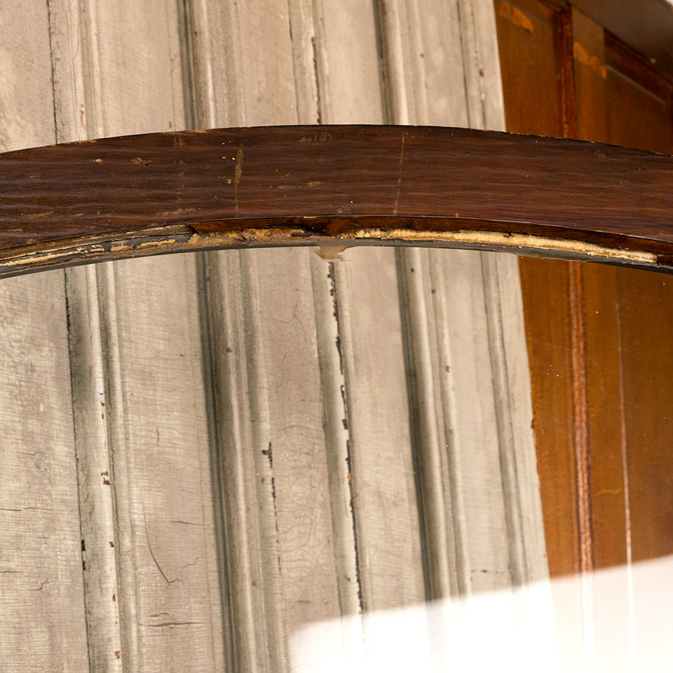 Antique architectural salvage arched top school classroom transom window with original wavy glass measuring approx. 35 7/8" wide x 34 1/8" tall x 1 3/4" thick. See photos to evaluate condition.