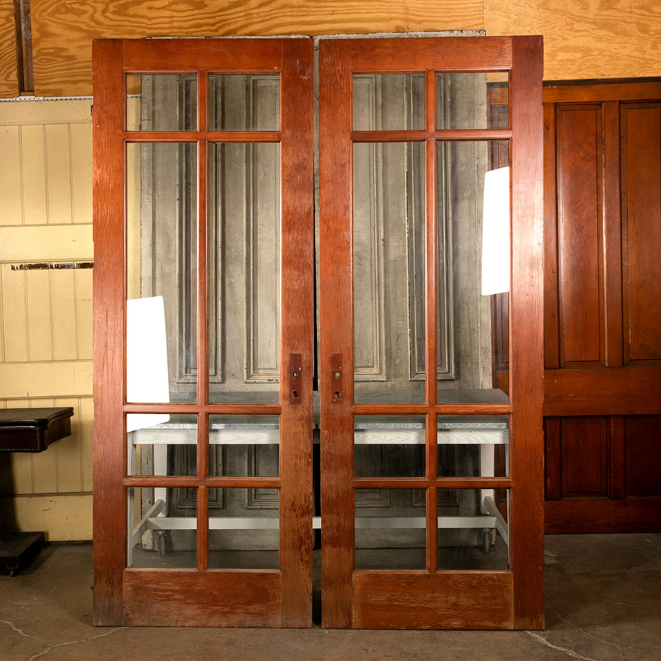 Pair of architectural salvage contemporary 8 lite French doors together measuring approx. 71 3/4" wide x 95 1/4" tall x 1 3/4" thick. See photos to evaluate condition. Priced at $2,500 for the pair.