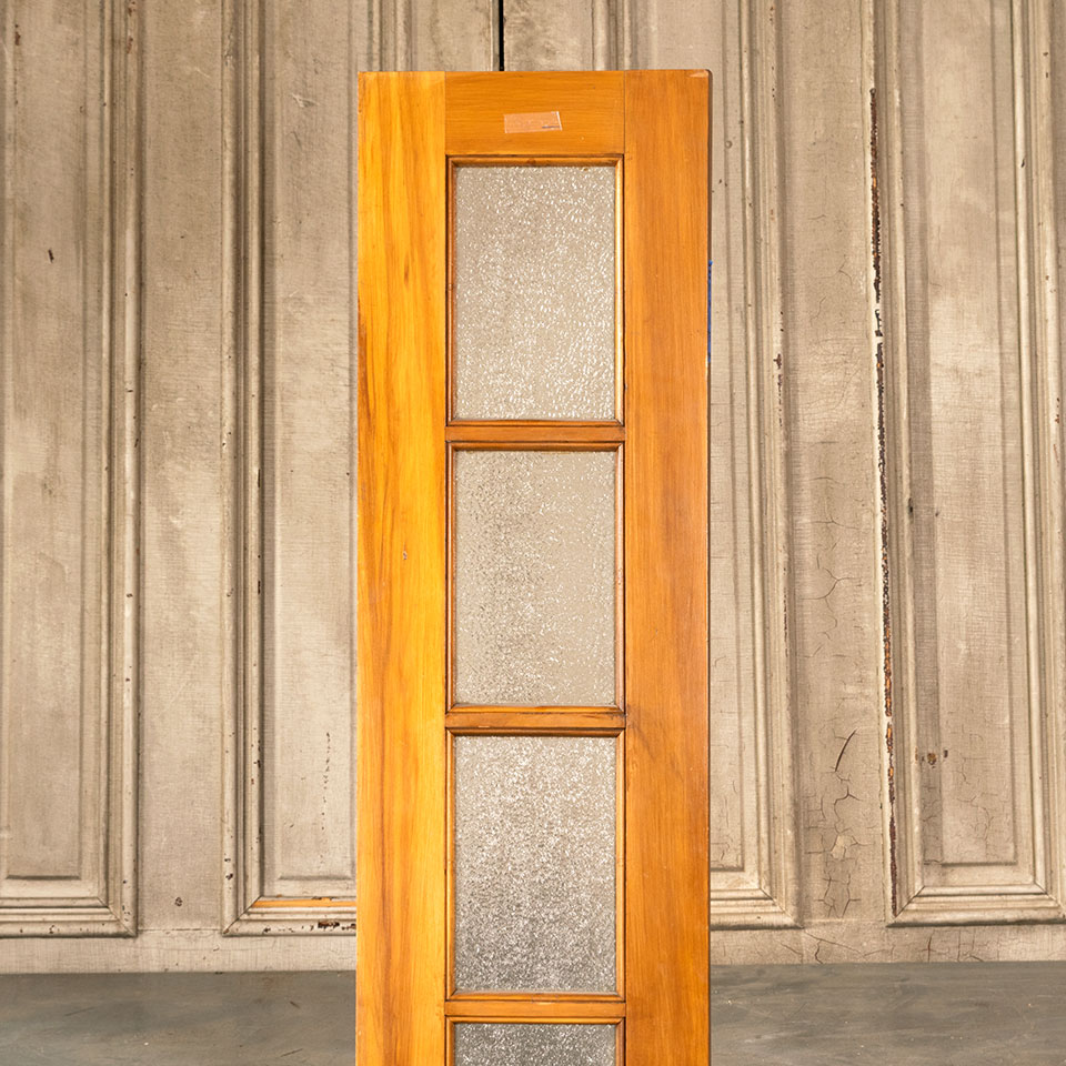 Vintage 6 lite wood school classroom closet/cabinet door with mortise lock and texture glass panels measuring approx. 13 3/4" wide x 74 1/4" tall x 1 1/4" thick. See photos to evaluate condition.
